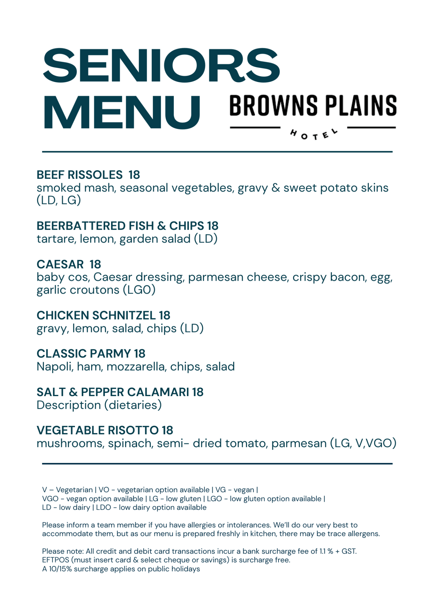 The Browns Plains Hotel offers a delicious range of pub classics that are sure to tantalize your taste buds. With something on the menu for everyone, you’ll be spoilt for choice!